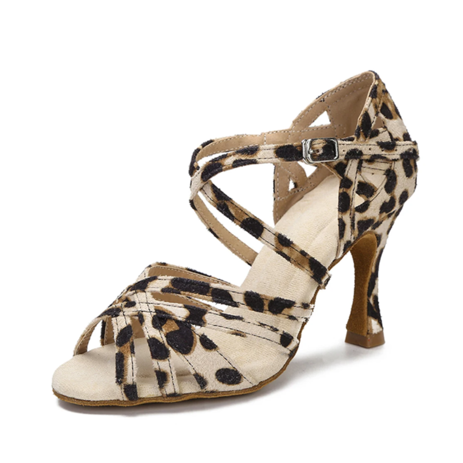 Pantofi de dans cu toc cleprsidră din colecție proprie confecționați din material textil cu branț confortabil din spumă cu dublă densitate, care oferă amortizare și confort piciorului.